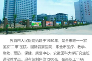 界首市人民醫(yī)院始建于一九五0年,系衛(wèi)生部批準的“二級甲等綜合性醫(yī)院”,是全市...